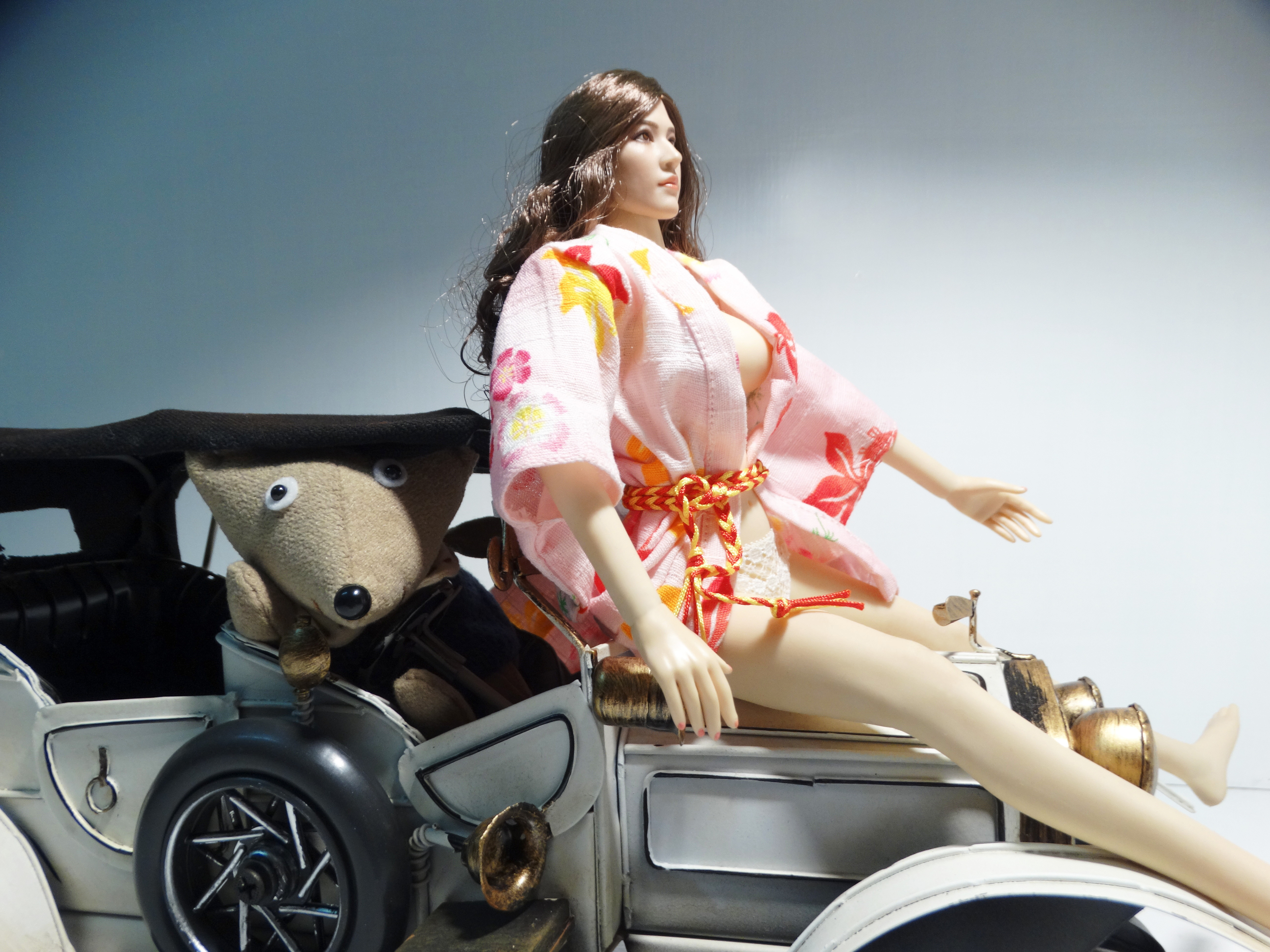 平成魔界伝説:夢の中でキツネが運転するクラシックカーに跨って冥界巡りに旅立つ浴衣姿の美少女の写真 Heisei monster tale: a girl dressed yukata rode on a fox car/Japan